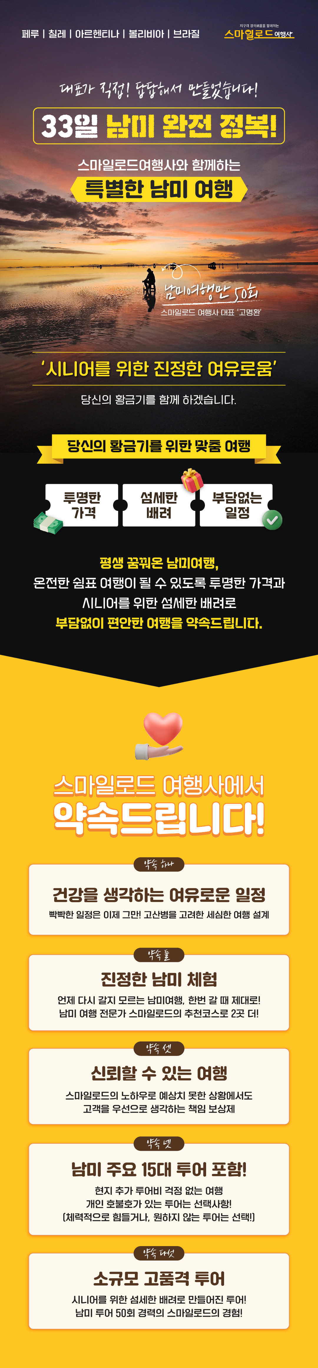 방문지역: 리마 - 이카 - 나스카 - 쿠스코 - 마추피추 - 비니쿤카 - 푸노 - 라파스 - 우유니 - 산 페드로 데 아타카마 - 산티아고 - 푸에르토바라스 - 바릴로체 - 엘찰튼 - 엘 칼라파테 - 우수아이아 - 부에노스아이레스 - 이과수 - 리우 데 자네이루